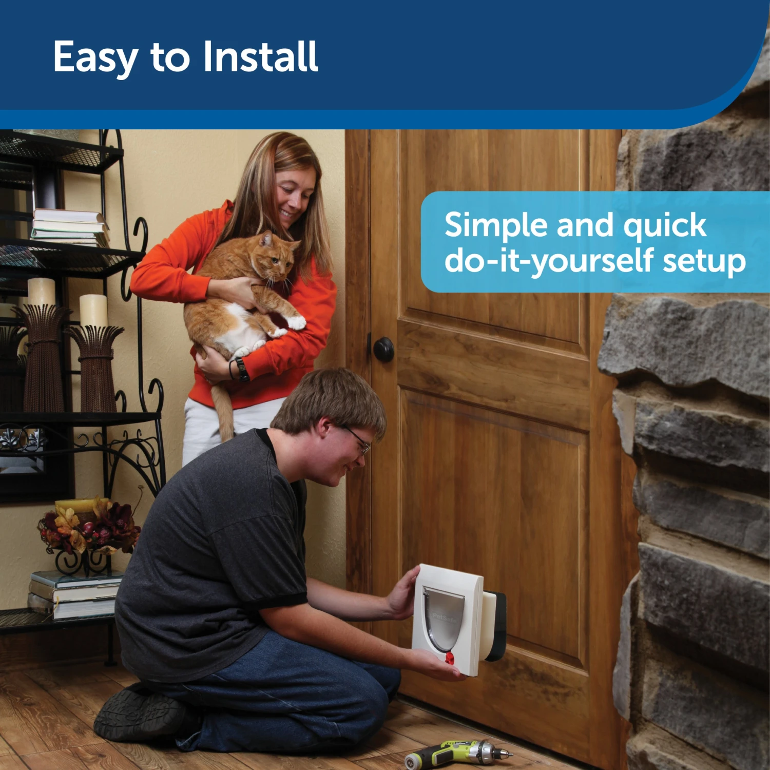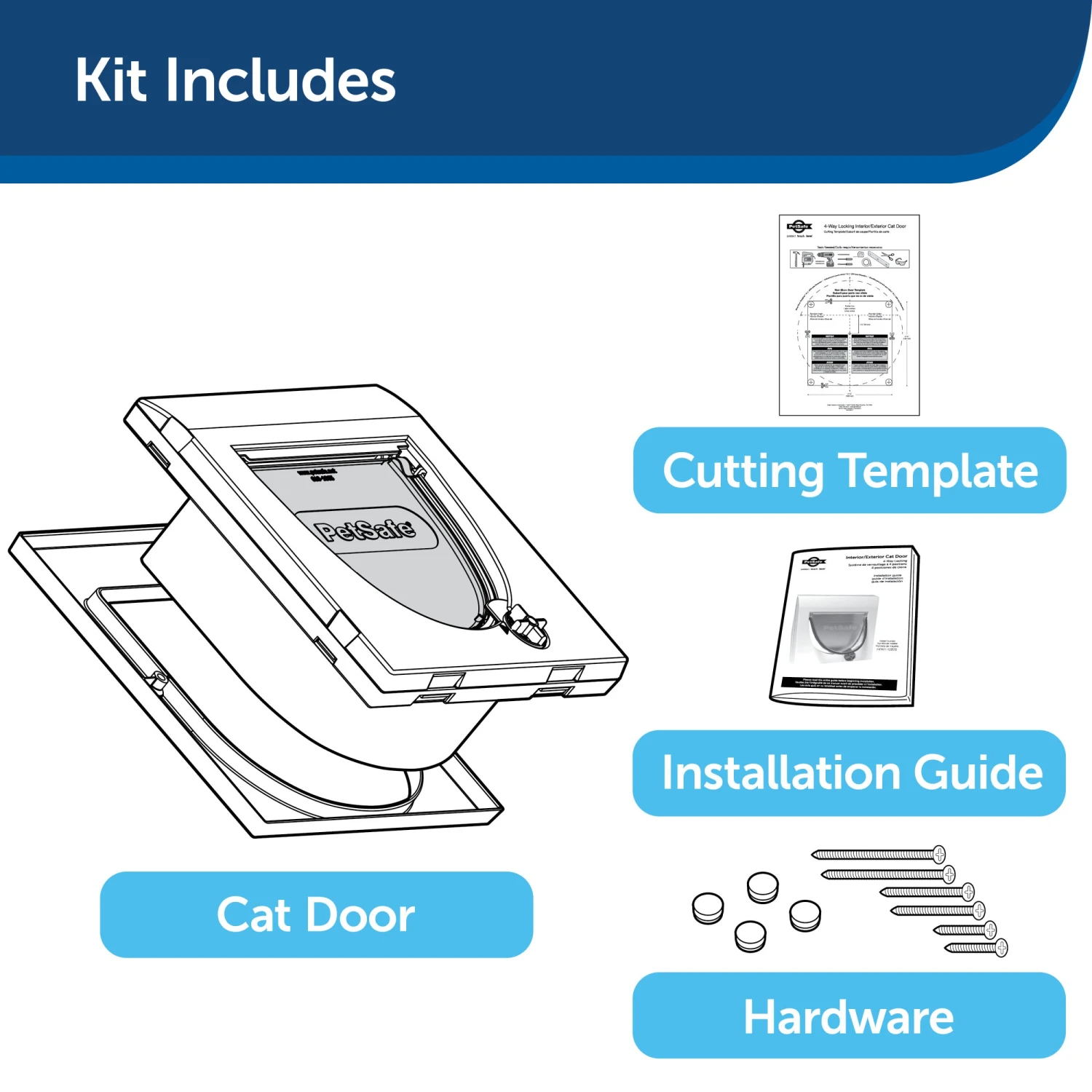 The PetSafe® 4-Way Locking Interior Cat Door gives you control of your cat’s indoor access. The 4-way lock allows your cat to have access to their food and litter box or move freely between rooms throughout the house. This cat door is easy to install and fits doors 1 1/8 inches – 2 inches thick. This door is best for cats who weigh up to 15 pounds. Trust PetSafe® to help keep your pet healthy, safe and happy.