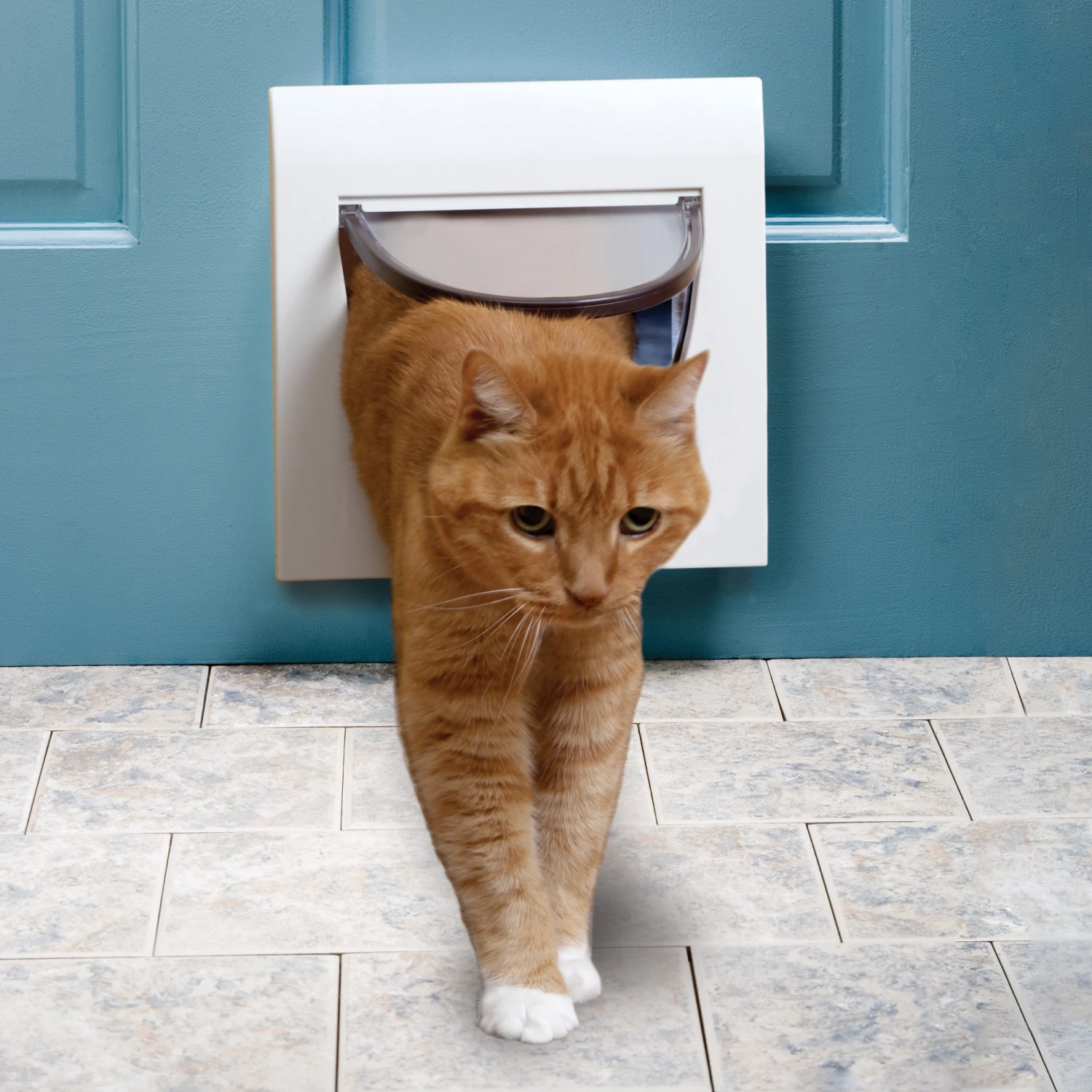 - Encourage your pet to push through the flap on his own.