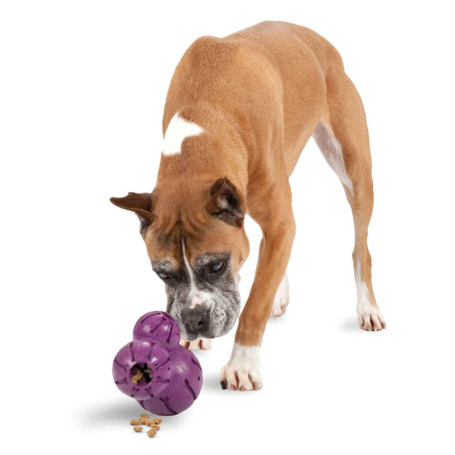 The multi-chambered Barnacle features three patented Treat Meters™ to randomly dispense treats while your dog plays. You can trim the Treat Meter prongs with scissors to increase the rate at which treats come out. The bone-shaped grooves can be smeared with treats like cheese or peanut butter for even more playtime options.