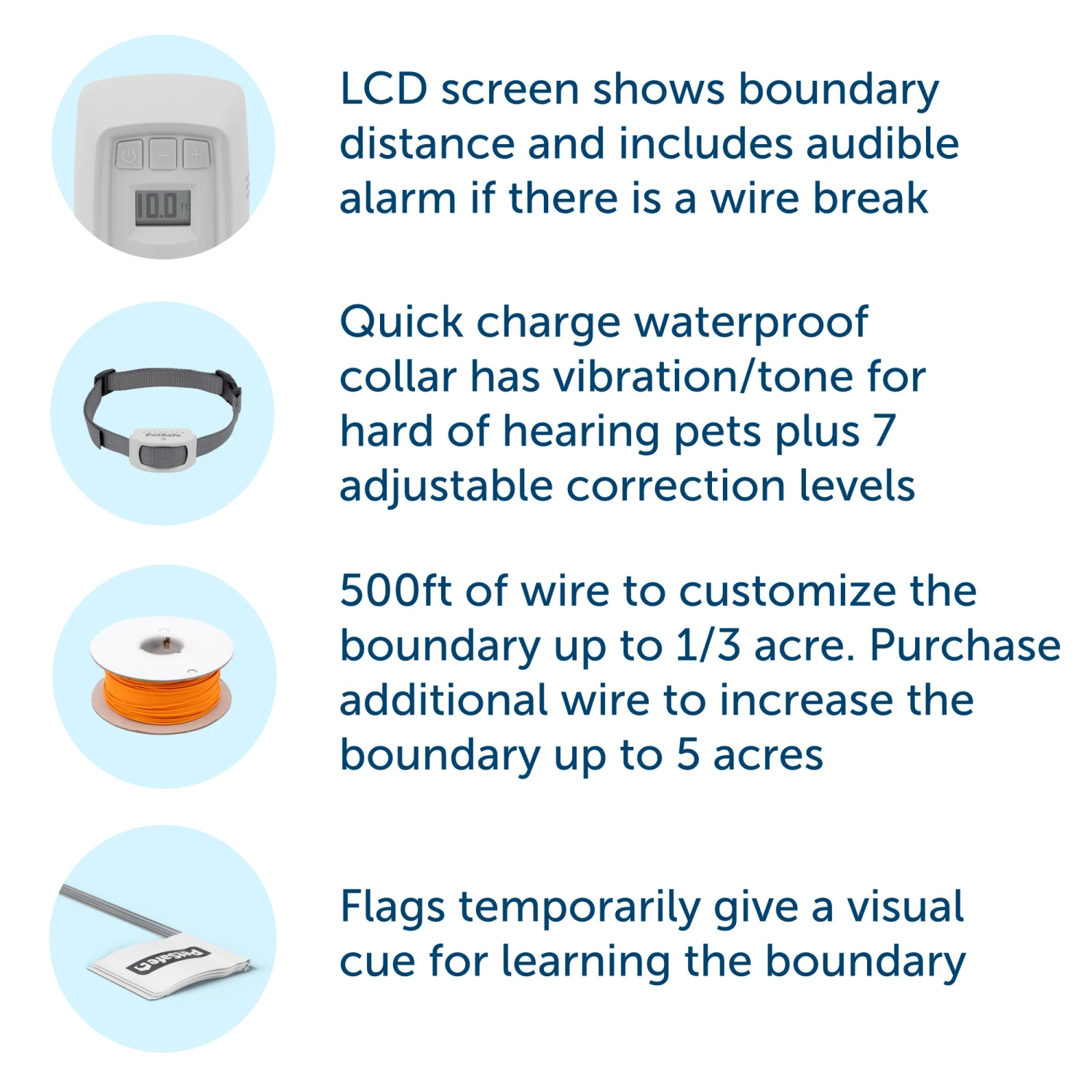 - Includes 500 ft of wire to fence in a 1/3-acre yard