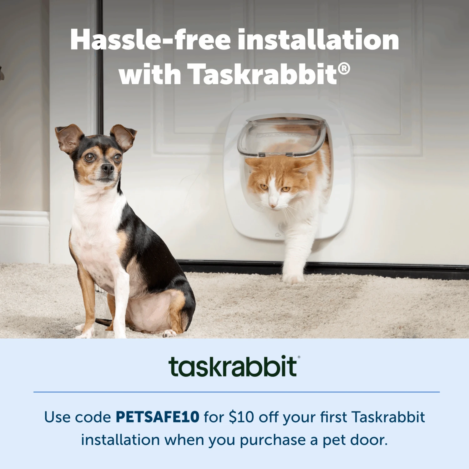 Installing this microchip cat flap is a DIY project. You can install the door into most wood, PVC and uPVC doors. If you want to install the door into metal, glass or brick, be sure to pick up a Microchip Installation Adaptor. If you’re hoping to install your new cat door in a wall, you’ll need to purchase a Microchip Cat Door Tunnel Extension since walls are thicker than standard doors. Your cat deserves the best. Trust PetSafe® to keep your pet healthy, safe and happy.