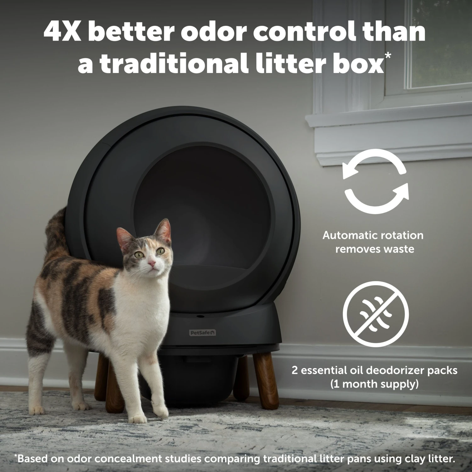 - Delivers 4x better odor control than traditional litter boxes, with a sealed waste drawer and integrated deodorizer