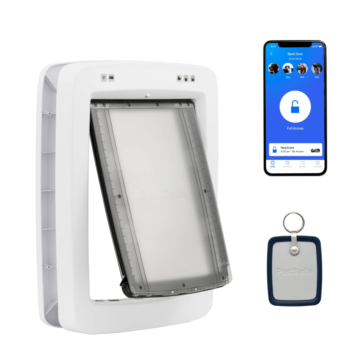 Stuck at work? Busy making dinner? No problem. SmartDoor™ Connected Pet Door ensures your pet’s play and potty breaks stay intact no matter where you are. This app-enabled pet door is perfect for the whole fur-family, giving your cat or dog their own personal entrance and exit. Meanwhile, you’ll have full control over the SmartDoor with the My PetSafe® app, where you can manage schedules, get notifications, and remotely control the pet door through your phone.