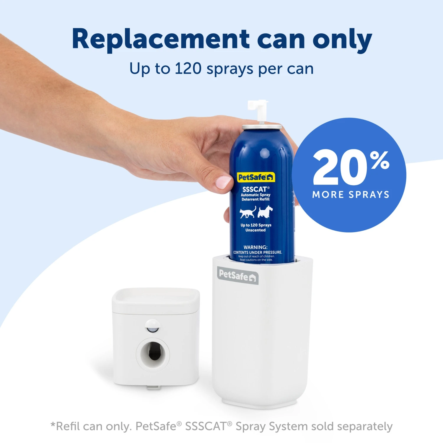 Never run out of sprays for your SSSCAT Automatic Spray Pet Deterrent with our 3-pack SSSCAT® Refill Cans. Compatible with your SSSCAT spray holder, each refill can packs up to 120 sprays that train your adventurous friend to stay away from off-limits areas.