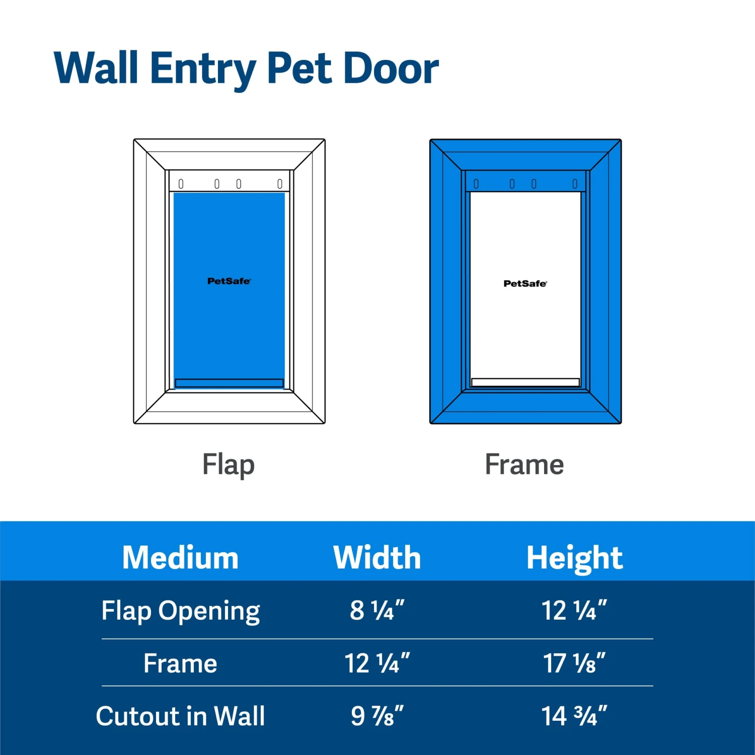 This pet door is great for homes where installation in a human door might not be possible. The included telescoping tunnel lets you install a pet door in walls 4 3/4 inches – 7 1/4 inches thick. If your wall is thicker than 7 1/4 inches, you can purchase a Wall Entry Pet Door Extension Tunnel for installation.